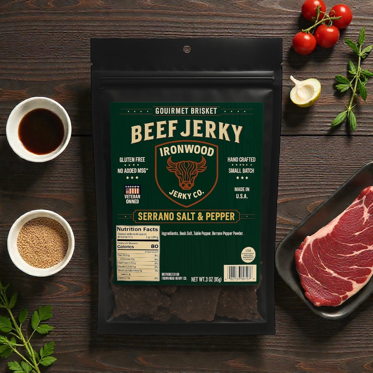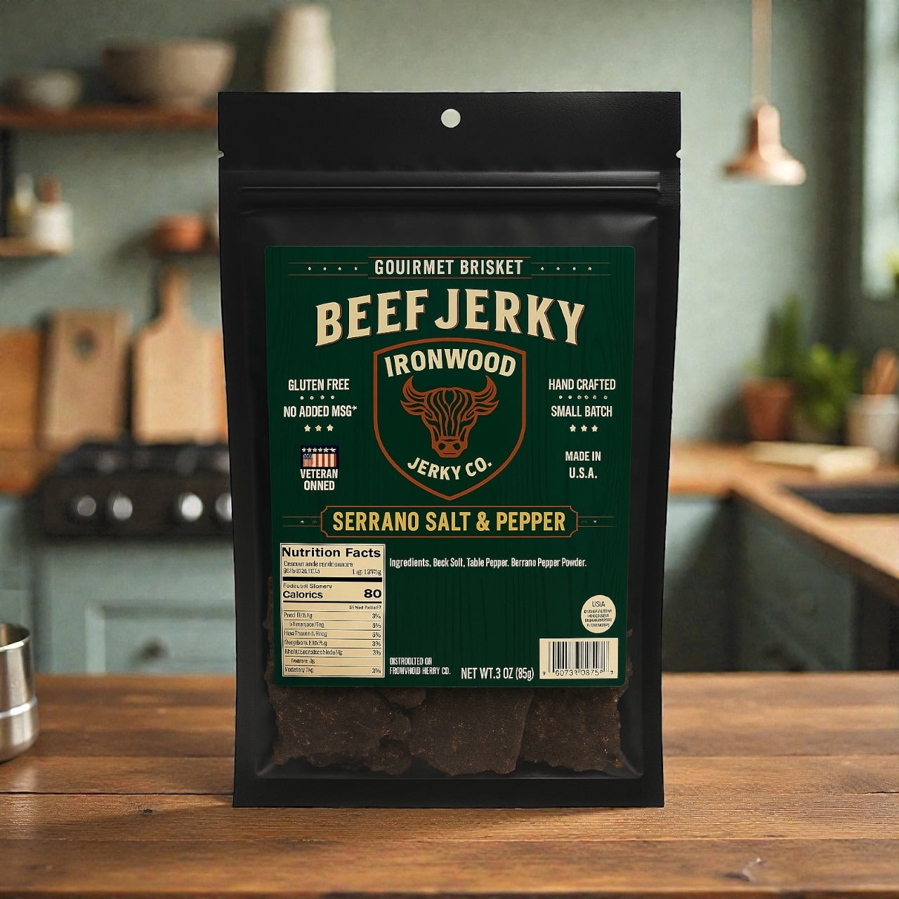 Get ready to spice up your snack game with our Serrano Salt & Pepper Brisket Beef Jerky!
